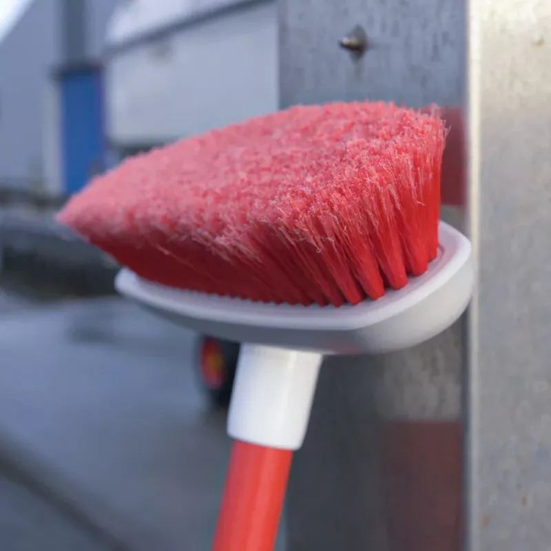 Dat klopt, zoals aangegeven is het belangrijk om een zuurbestendige wasborstel te gebruiken. Deze borstels zijn veel duurzamer dan reguliere borstels en zijn te herkennen aan de rode haren. Ze zijn verkrijgbaar in vier varianten: een borstel op steel en drie handborstels (met lange steel, korte steel en een smalborstel voor lastige hoekjes). U kunt deze borstels vinden bij producten.